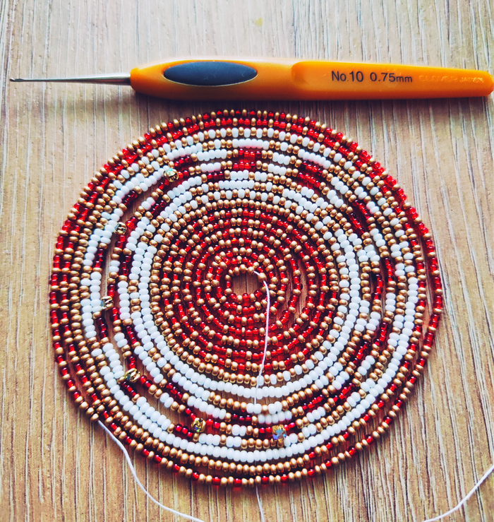 Набрала на нить джинс бисер чех по схеме, далее начала вязать крючком 0.9 столбиком без накида с 6 петель, прибавляя в каждом ряду 6 петель, затем просто ровно без прибавок, а далее убавляя по 6 столбиков, все это предусмотрено схемой. Каркас - это обычный ёлочный пластиковый шарик. На самом деле на шарике 3 машины, есть ещё жёлтая.