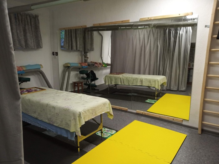 маленькая комната тоже с зеркалами, либо второй стол для второго массажиста, либо маленький зал для индивидуалок.