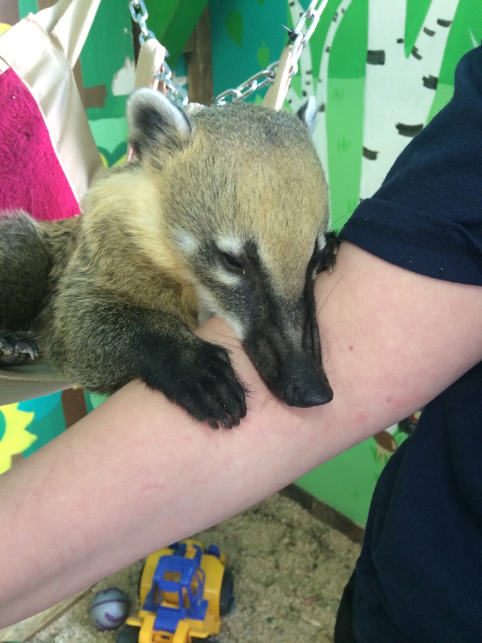 Итак, сегодня мы снова пришли к носухам:) как только муж зашёл в вольер - животные мигом прыгнули к нему на руки:) оказалось, нас запомнили:)