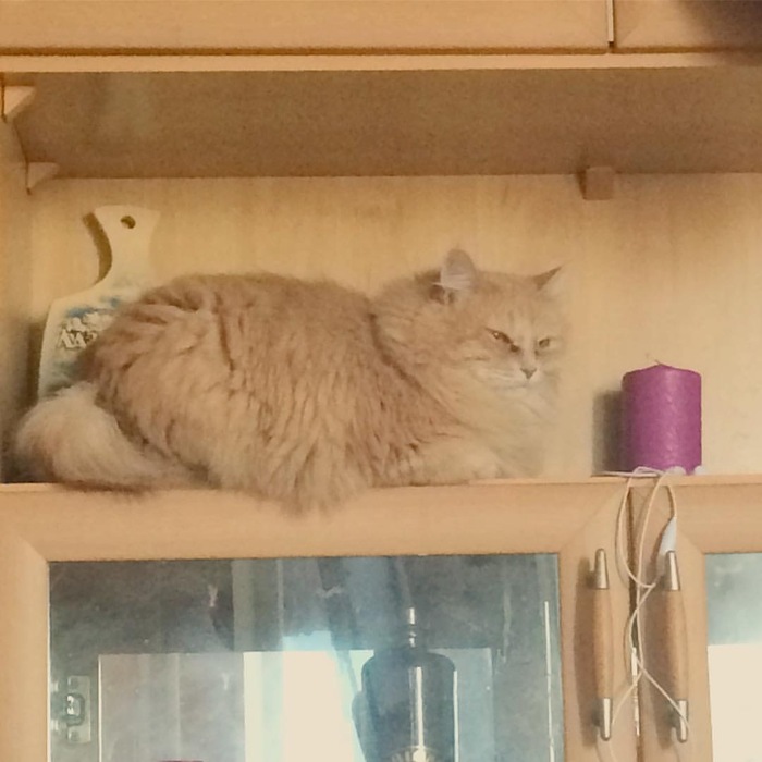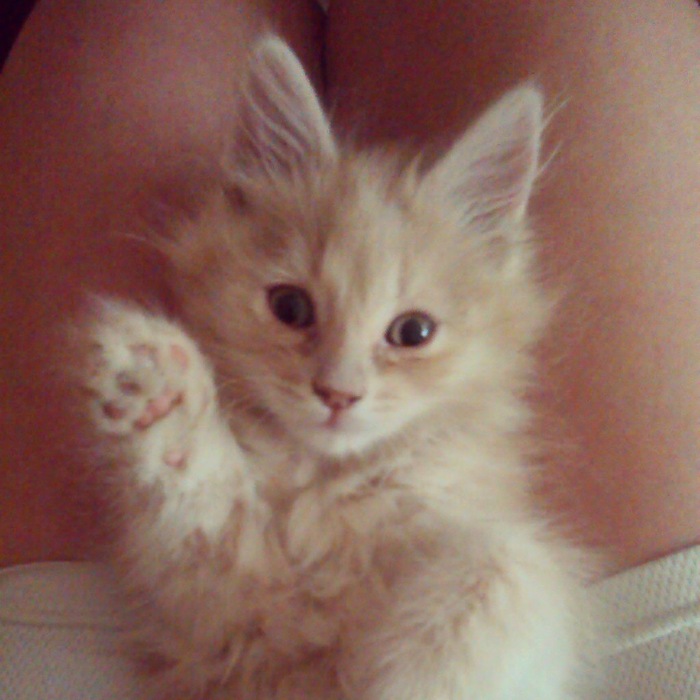 Когда мне исполнилось четверть века, я вышла замуж. И незадолго до свадьбы мы с будущем мужем взяли маленькое существо цвета спелого персика. У неё был поломанный хвостик, что придавало ей схожесть с собакой породы чау-чау, или, более того, с померанским шпицем. В первую ночь она плакала, а первое утро пугала меня странными пошатываниями и криками исключительно на подлокотниках дивана (простите, от мамы оторвали). К вечеру того дня, этот ребёнок исправно ходил в лоток, хотя у матери своей она даже не знала что это такое: жили тогда во дворе частного дома.