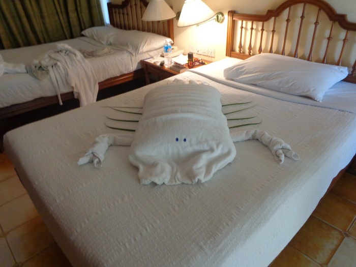 А после этого каждый день мы получали ровно две бутылки воды (даже если предыдущие не были выпиты) и зверюшек из полотенец. Бутылок воды, в итоге, скопилось много) нам одной вполне хватало на день. Правда, ребята из номера неподалёку жаловалась что вместо полотенцеживотных им каждый день ставят по три шампуня и по три геля для душа. Вместо двух. При том, что ребята их не трогают.