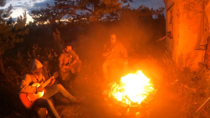 Небольшой ролик, который я делал перед самой первой ролевой игрой из серии Выброс. Сюжет простенький. Не было особо времени, нормально написать сценарий и сделать раскадровку. Набросал пару сцен на коленке, и уже на полигоне додумывал что и как снять. Снималось всё на Canon 6D. Мне тут так же пришлось выступить на всех ролях. Выставлял кадр, камеру, настройки, штатив. Потом шёл в кадр. Съёмки заняли несколько часов.