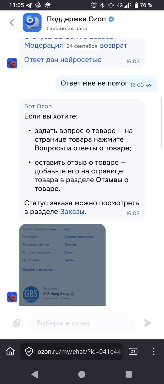 Вкратце – и Я и О - 3.14дарасы относительно крупногабаритный товар не могут привезти в ПВЗ и Вы вынуждены оформить доставку курьером. Точную дату выбрать нельзя, «Доставим в период с 1-3 писло». Комментарий с желаемой датой доставки будет проигнорирован. А дальше стандартные попытки общения с ботом и тщетные попытки связаться с продавцом, который НИЧЁСИ даже один раз вышел на связь, поставив перед фактом сообщением типа «Вам удобно 1 числа? Ок, доставим». Ваши дальнейшие ответы что не удобно и что доставка нужна на другое число и что вы указывали желаемую дату – будут проигнорированы. По телефону естественно позвонить нельзя, потому что неясно куда звонить. Обращение в сам Ozon тоже не даёт результатов, сначала вы тратите время на попытки пробиться через бота, а потом через 9 минут на минуту подключается оператор и говорит связывайтесь с продавцом, точной даты доставки Вам не будет. Ну и пока вы ждали ответа занимаясь другими делами, оператор ожидаемо покидает чат. А ты мне сделала больно, и покинула чат.