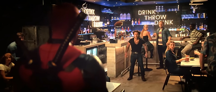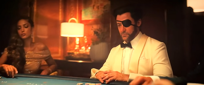 3. Росомаха в белом костюме с повязкой на глазу и играя в карты по дизайну он немного похож на классического Бонда из фильма "Тандерболт" (1965), но эту версию Логана зовут "Патч". В комиксах Патч не из альтернативной вселенной, а псевдоним, который Росомаха иногда берет, скрываясь в Мадрипуре - вымышленной восточноазиатской стране, которая в MCU появлялась один раз в "Соколе и Зимнем солдате", значит Уэйд перемещается не только по вселенным но и во времени.