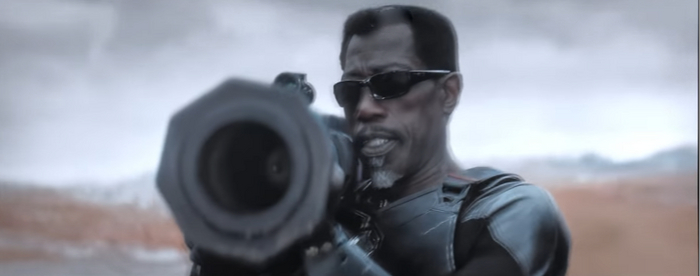 Услышав приближающиеся шаги Уэйд нарвался на самое ахрененное камео всего фильма: на лопатки его уложила Электра (играет ее Дженнифер Гарнер, которая сыграла героиню в фильме Сорвиголова в 2003 году) следом заходит Блэйд (играет его неповторимый Уэсли Снайпс) и в конце заходит Гамбит (его сыграл Ченнинг Татум, он наконец-то появился в роли этого персонажа из-за постоянных отмен фильма о данном супергерое, кстати если честно с его шеей в костюме и рисунок на лице он смахивает на Модака ) и позже к ним присоединяется последний член сопротивления, которая и привезла наших героев это Лора или Х-23 (сыграла ее Дафни Кин, которая появилась в фильме Логан 2017 года, я до последнего надеялся что ей выдадут костюм как в комиксах похожий на костюм росомахи но увы нет).