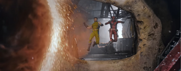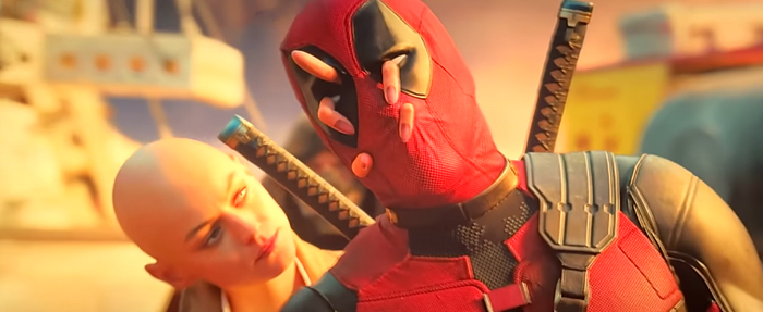 Все это заканчивается знаменитой геройской стойкой с выпущенными когтями из остатков Росомахи в исполнении Дэдпула и лого фильма.