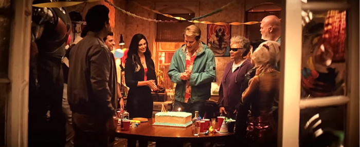 Нас переносят на Землю-10005. Нашему герою устраивают вечеринку сюрприз в честь Дня Рождения. Дэдпул приятно проводит время с друзьями из предыдущих частей фильма это Ванесса, Сверхзвуковая Боеголовка, Юрико, Шэттерстар, Колосс, Бак или как его назвала Ванесса "Жирный Гэндальф", слепая Эл, Допиндер и куда же без Питера. Мы узнаем грустною новость, что шуток про "бодрящий иней" больше не будет, а и то что Уэйд разошелся с Ванессой.