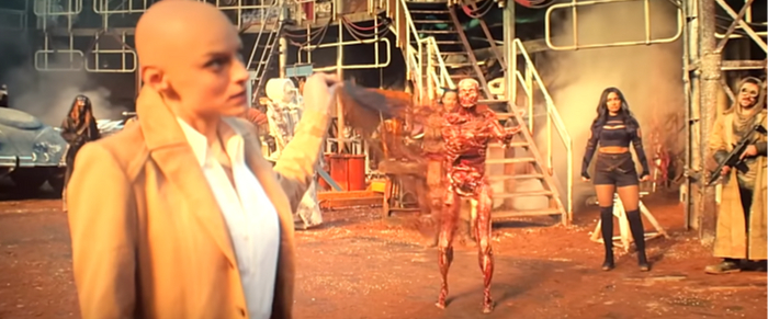 Конечно же наших героев только поцарапали в то время как они перебили всех, досталось даже Джаггернауту которому просто ноги отчекрыжила х-23 а после и снесла голову, на экране начался какой-то цирк все начали танцевать делать какие-то акробатические трюки, причем рейдеры только два или три раза попали по нашей команде и то видно случайно, их можно было бы одеть в костюмы штурмовиков из звездных воин и была-бы отличная отсылка, везде взрывы, во все стороны летит мусор и конечности, опять куча крови.