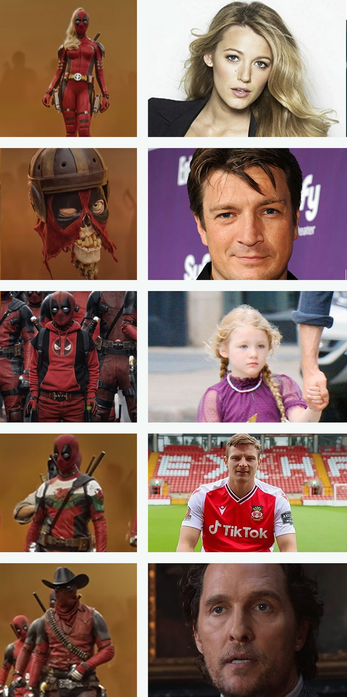 Снова камео которые надо перечислять: Блейк Лайвли в роли ЛедиПул ( как узнали? да в титрах написано вот как. Все хотели увидеть супругу Рейнольдса в костюме, но остался только ее голос озвучки), Мэтью Макконахи ( да он тоже тут, а вы думали почему Дэдпулу ковбою уделено столько времени? ну я думаю сами додумаетесь и сразу дам ответ на следующий вопрос: снова титры), Натан Филлион ( кто смотрел Стражи Галактики, Светлячок, сериал Кассл вот этот актер, как думаете какого Пула он тут играет? А вот хрен не угадали, он озвучивает ГоловуПула в шляпе с пропеллером), Инес Рейнольдс ( маленькая КидПул которая сильно сквернословит это средняя дочь Рейнольдса и Лайвли), Пол Маллин ( Дэдпул с флагом красного льва или тигра Уэлшпул, это профессиональный футболист из клуба Рексхэм АФК, которым владеет Рейнольдс). Весь этот корпус оказывается служит Кассандре и пришли защитить ее от наших героев, пока та готовит лютый геноцид во всей вселенной.