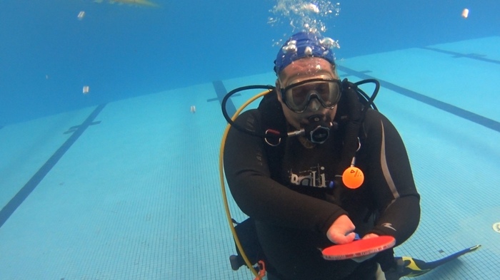 Погружение состоялось во вторник, 29 октября, в бассейне СГУПСа. По словам инструктора Анны Трипольской-Эрман, для работы выбрали максимально свободное время, когда в бассейне мало людей.