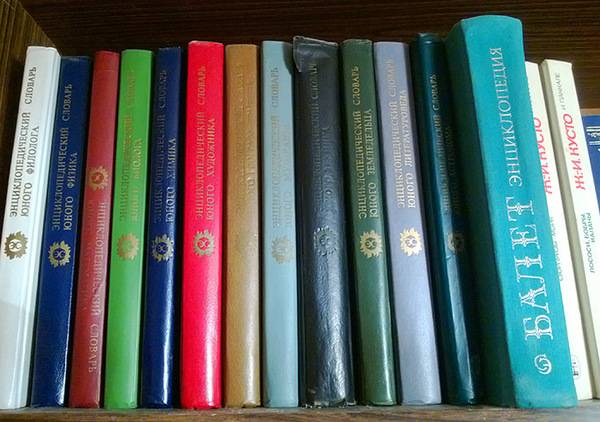 Большая часть книг, как уже говорилось, состояла из энциклопедий и энциклопедических словарей, меньшую же часть составляла фантастика. Ну как меньшую, книг 50 наверное. Начиная от таких серий словарей: