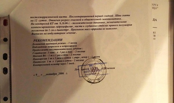Однако, результаты сих мучений превзошли все наши ожидания. За неделю после второй операции состояние мое значительно улучшилось. В первую очередь координация и чувство равновесия. Шутка ли, но мозжечку стало жить сильно легче.