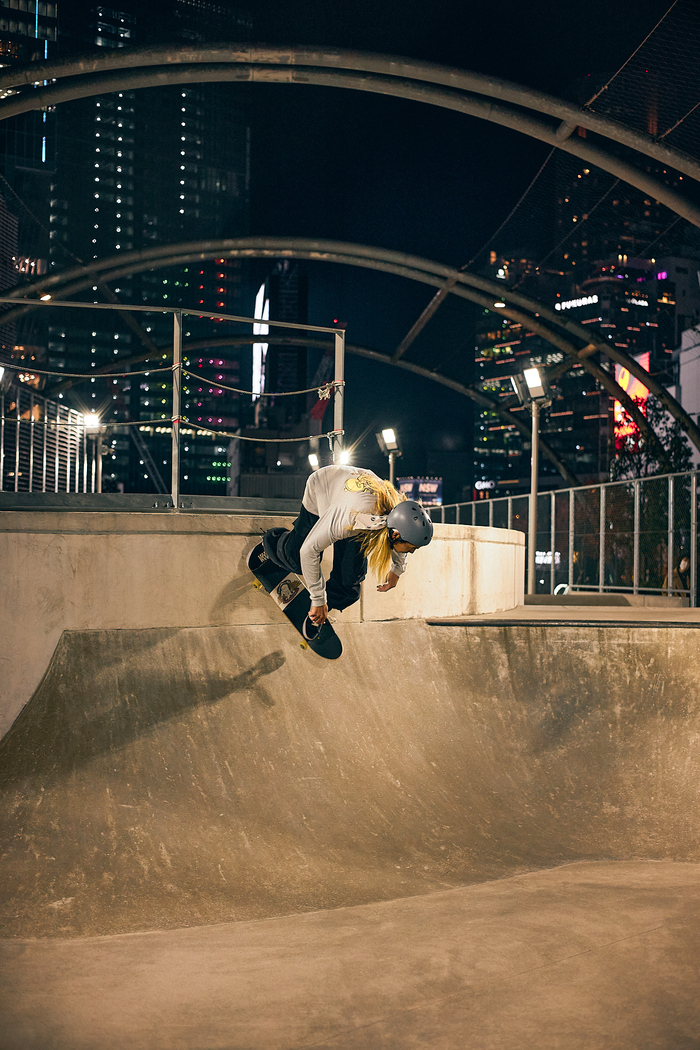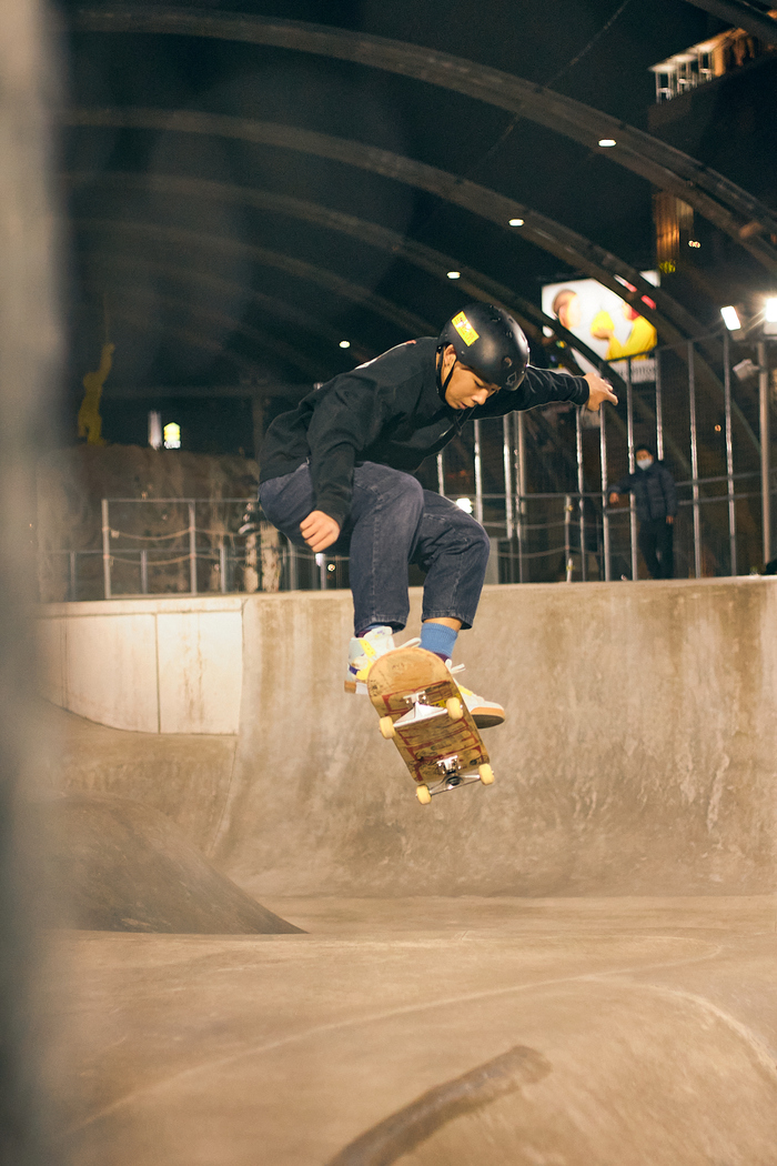 Прогуливаясь по Сибуе с камерой, я наткнулся на этот замечательный скейтпарк. Раньше здесь располагалось футбольное поле и стоянка, но теперь это современный четырехэтажный торговый центр с отелем и парком на крыше. В парке можно найти скейт рампу, скалодром и площадку для пляжного волейбола. Гуляет много людей