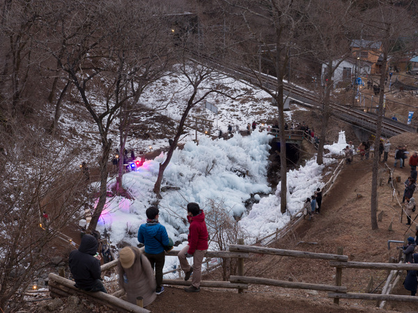 Зимой в паре часов езды от станции Икэбукуро, в городе Ёкодзэ префектуры Сайтама у станции Асигакубо можно найти ледник. И хотя в Сайтаме зимой снега не так уж и много, место расположено между несколькими холмами, этого достаточно для создания ледника. Да, ледник искусственный, по ночам воду из речушки разбрызгивают по холмам.