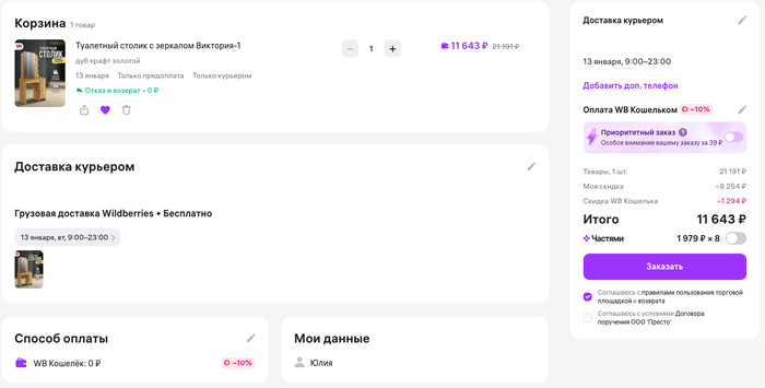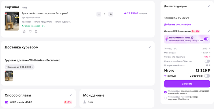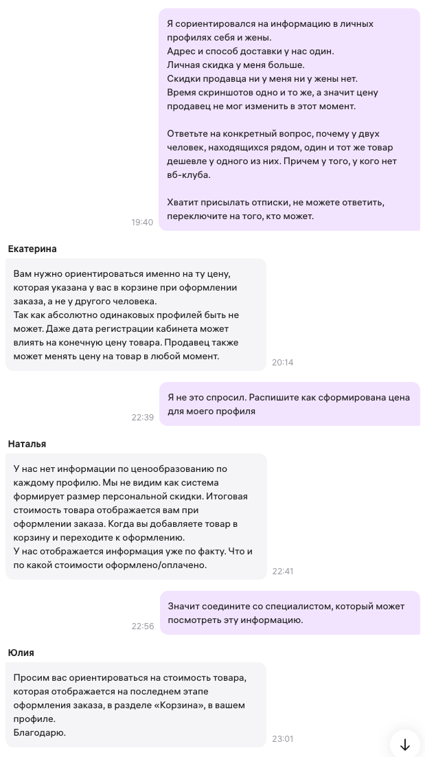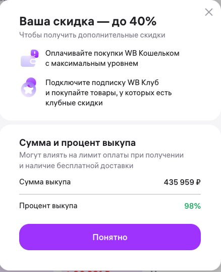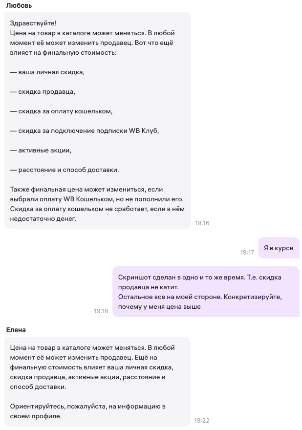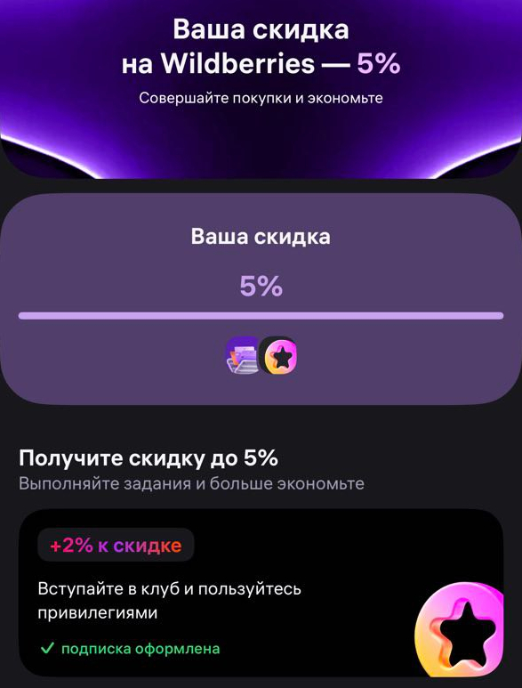 В то время как скидка жены на WB составляет 10%, причем Wb Club у неё нет.