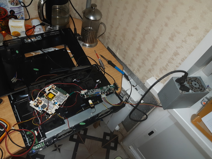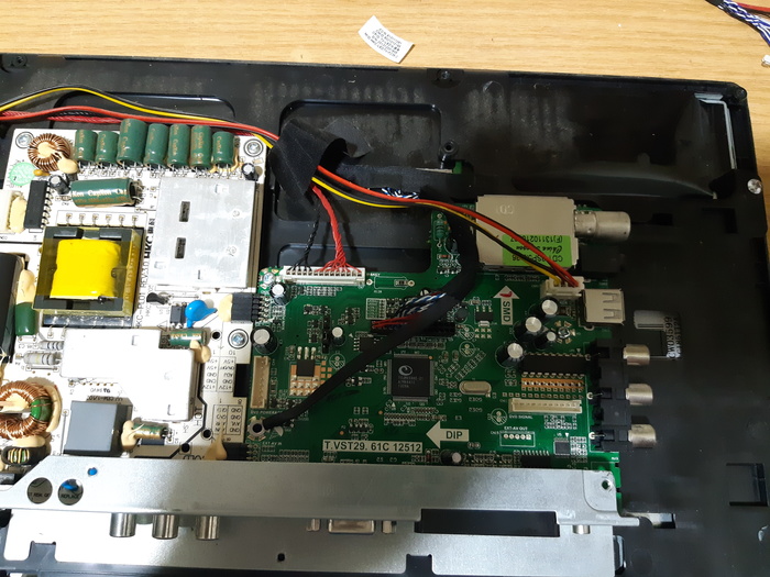 Сначала надо разобрать телек и посмотреть на кишки, которые будем вырезать. А внутри вот чо