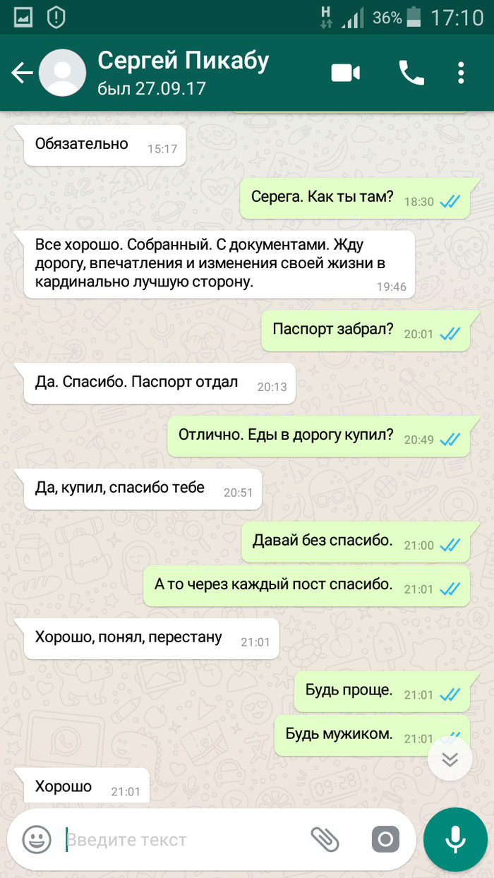Всю переписку не буду выкладывать, там ее много. В тот вечер мы еще придумали легенду от куда он взялся. В общем как вы воняли я ему перевел небольшую сумму денег -6000р. Просто поверив на слово. Поверив что этот человек не обманет, не предаст. Далее произойдет странная ситуация.