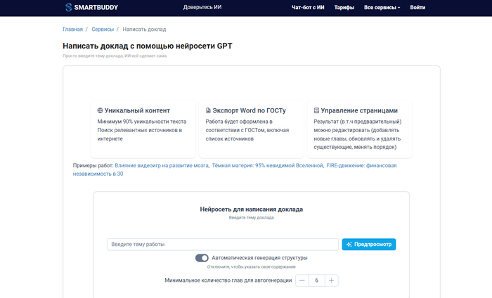 Оформление по ГОСТу — нейросеть автоматически форматирует работы под академические стандарты вузов.