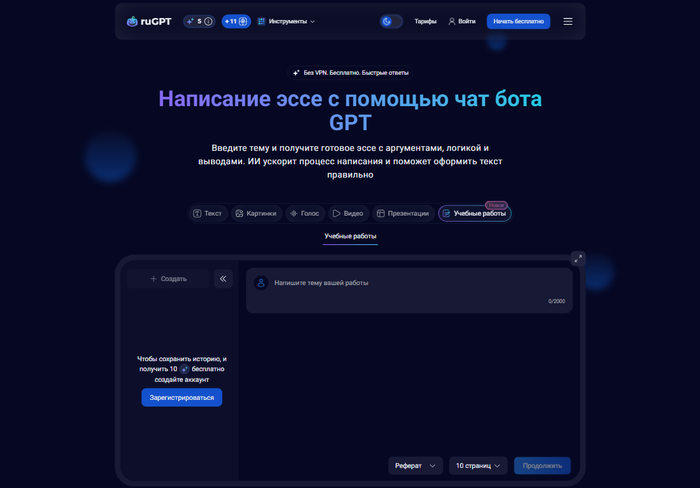 Без регистрации и бесплатно — начните писать эссе мгновенно, без входа в аккаунт и ограничений по символам.