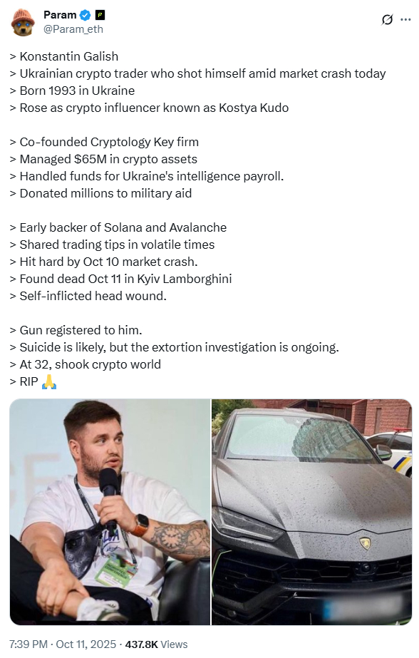 Твиттер, естественно, сейчас полон твитов боли и страдания от криптанов. Известный трейдер Константин Кудо по итогу даже, кажется, самовыпилился прямо в своей ламбе.