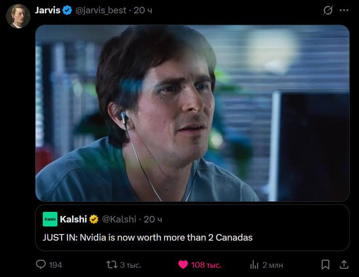 Главы МВФ и Банка Англии на прошлой неделе аналогично, кстати, заявили о риске ИИ-пузыря на рынках. Короче, каждому сейчас надо успеть хотя бы раз сказать что-нибудь туманное в стиле «может и есть пузырь, может и не пузырь, очень страшно, но всей правды мы пока не узнаем…» – чтобы потом, если что, можно было показывать пальцем назад и говорить «а мы вас предупреждали!!»