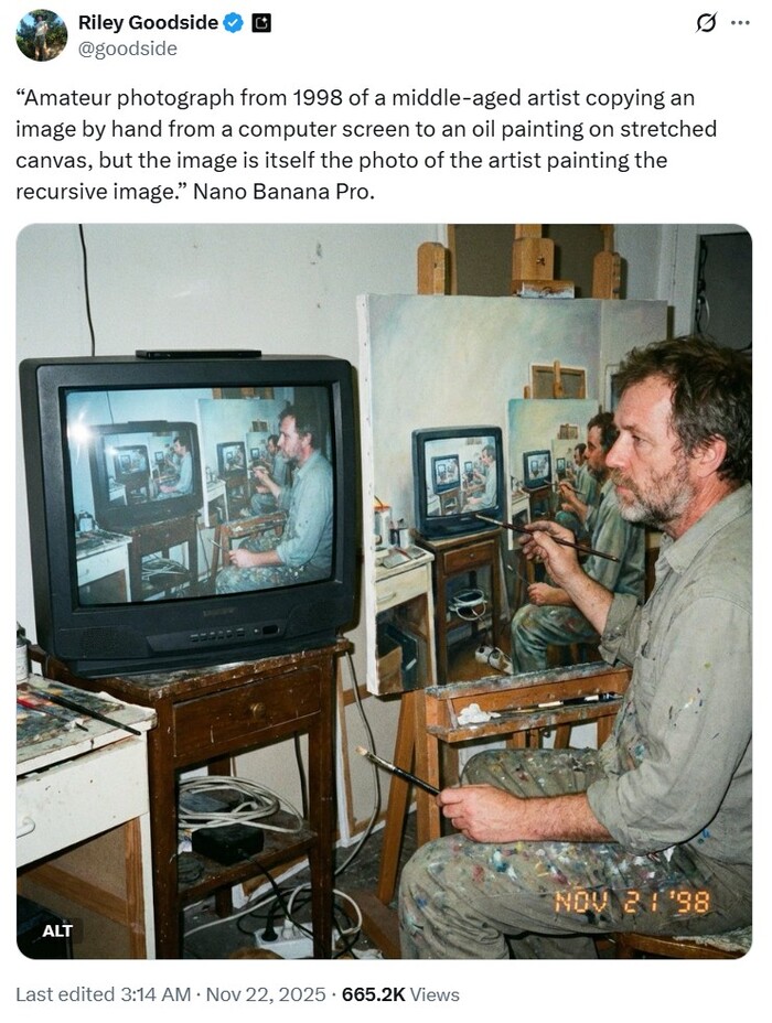 Картинко-генеративные мощности Гугла тоже приросли с Nano Banana Pro (это всё та же Gemini 3 в гриме) – судя по отзывам, это просто самый огненный текущий нейрофотошоп из всех доступных. Теперь там еще и надписи нормальные выходят, а не стандартный для gen-AI буквослоп.