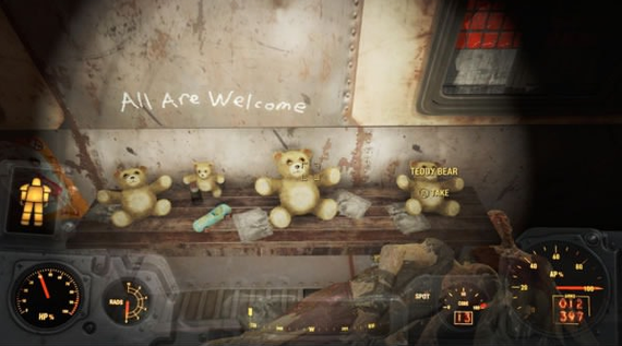 Я нашел этого плюшевого мишку на базе рейдеров. Это показалось мне очень милым и я заскринил его.