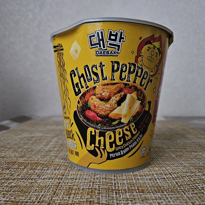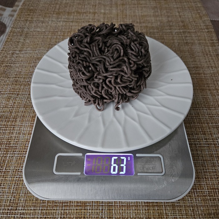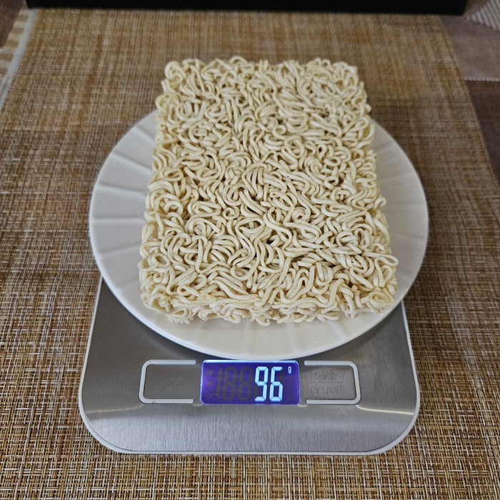 Вполне себе богато, за эту цену. Поэтому давайте рассмотрим всё поподробнее. Традиционно начинаем с лапши. Она пшеничная, ярко-жёлтая в круглом брикете. При этом интересной формы (плоская) и пахнет как кукурузные палочки Джокер (кто помнит) со вкусом пиццы. Масса, как и обещано, около 80 граммов.