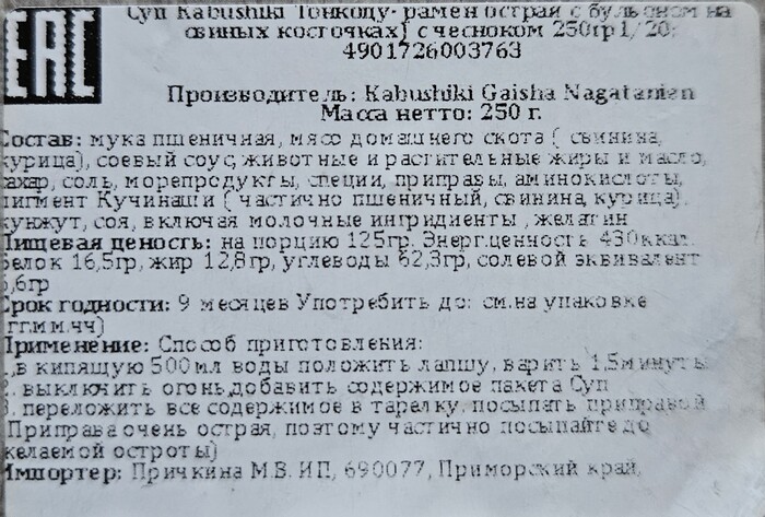 Процесс готовки описывать не буду, а прикреплю скрин с переводом с упаковки. Лишь добавлю, что я держал в кипятке 6,5 минут.