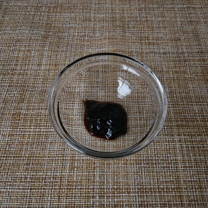 Пакетик с кунжутной пастой. Пахнет кунжутом. Вкус вяжущий, пресноватый.