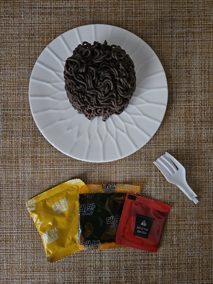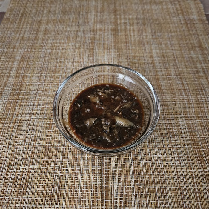 Далее приличная порция коричневого пряного соуса. Запах и вкус как у соевых снеков Латяо один в один. Острота незначительная, но есть.