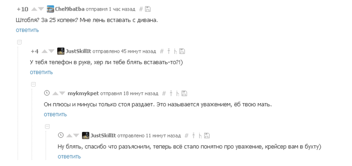 9 Rayshed Да что ты знаешь про уважение? (комменты) 7 лет назад #comment_104986465 Комментарии на Пикабу Уважение Комментарии Пикабушники