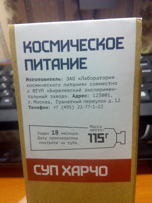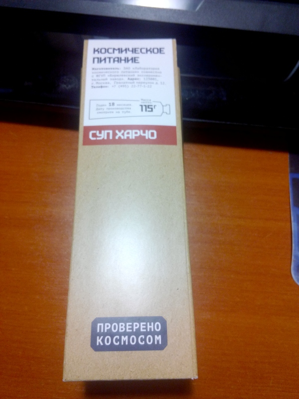 Ко мне в руки попало настоящее космическое питание, то самое, в тюбиках и не долго думая я решил его попробовать) У меня были суп-харчо и cвинина с овощами. Вообще выбор неплохой, есть 4 первых, 3 вторых блюда и 4 вида десерта.