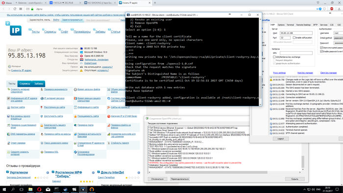 Устанавливаем на windows openvpn, закидываем в папку конфига наш файл .ovpn, жмем соединиться.