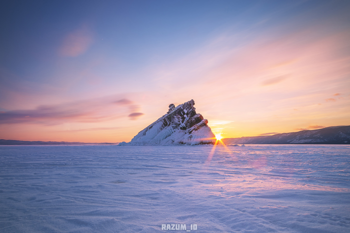 Прекрасный закат в проливе Малое море у острова Еленка, или, как называют его буряты - Ижилхей.
