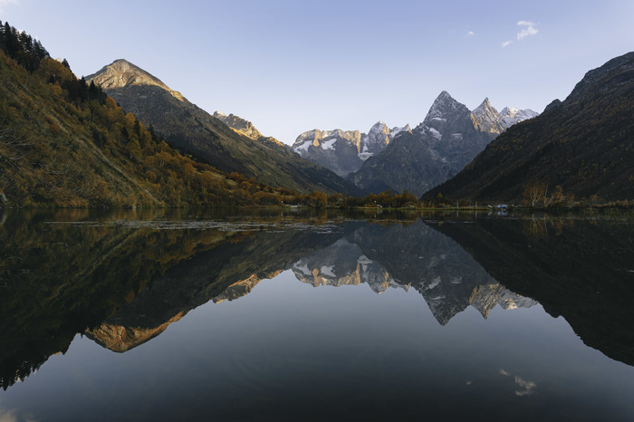 Настоящий Адыгейский слоеный пирог напоминают открывающиеся прямо с седловины виды на рассвете! В ясную погоду можно разглядеть даже высочайшую точку Европы - Эльбрус. Невероятная мотивация для раннего подъёма, ведь в другое время все эти красоты могут быть скрыты за облаками.
