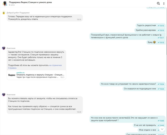 О невозможности вернуть товар у них написано в соглашении,