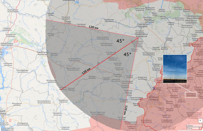 Минобороны РФ также указывает на юго-западное направление прилета, утверждая, что пуск был произведен из подконтрольного Украине Доброполья. Однако в юго-юго-западном направлении (например, южнее Угледара и в районе Великой Новоселки) в пределах дальности полета ракеты «Точки-У» (120 км) имеются позиции российских и «сепаратистских» сил, то есть пуск вполне мог быть осуществлен оттуда.
