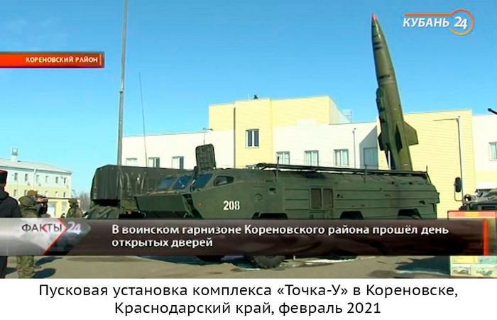 МО РФ аппелирует к тому, что на вооружении России якобы нет комплексов «Точка-У». В который раз напомним, что еще в конце прошлого года сообщалось, что созданная незадолго до этого 47-я ракетная бригада 8-й армии (дислоцированной к востоку от Донбасса) имеет на вооружении «Точки-У» (их можно увидеть в репортаже местного телевидения). Бригадный комплект «Искандер-М» 47 рбр получила только 26 января этого года, менее чем за месяц до вторжения, и едва ли успела его освоить.