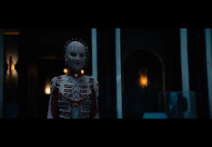 Над дизайном сенобитов постарались на славу. Если вас привлекали старые БДСМ костюмы, то их эпоха прошла. Все это хорошо вписывалось в сюжет первого фильма, но не здесь. Этот фильм идет своей дорогой и отказ от привычных костюмов идет ему на пользу. Теперь одеяние сенобитов соткано из собственной кожи и увечий. Все они связаны булавками и обладают неким потусторонним свечением. Не все дизайнерские решения мне пришлись по вкусу, но это касается отдельных деталей у пары сенобитов. Я смотрю на обновленный Орден и вижу их взаимосвязь и принадлежность к одному миру.