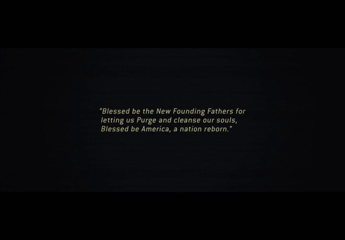 Идея Судной ночи, для богатых людей, является, своего рода, религией. Убийство одного из группы молодых людей не имело значения. Это было наказанием, а не способом «очищения». В сам же момент «очищения» мы слышим благодарность за принесенную жертву или же некое подобие молитвы, как перед ужином, и мне безумно нравится эта деталь.