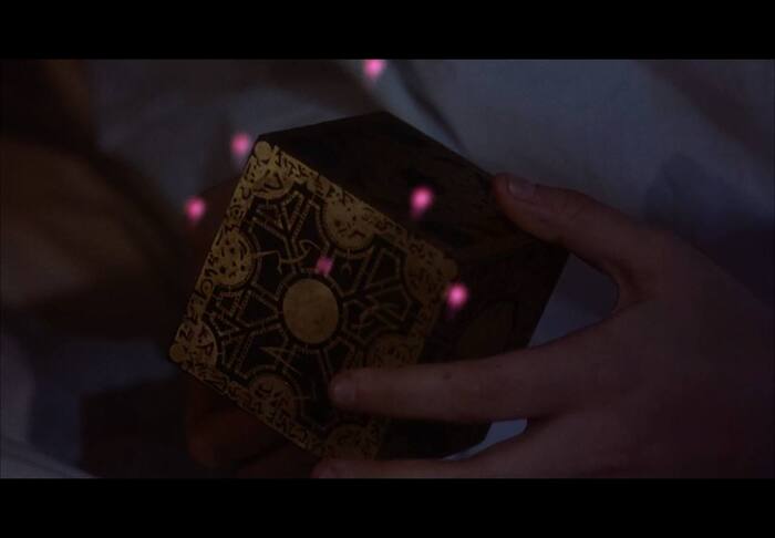 Шкатулка получила обновление как в визуальном плане, так и в функциональном. Она больше не ограничивается «неземными наслаждениями» и теперь мало одной смекалки, чтобы ее открыть. Мы получаем шесть конфигураций, пять из которых потребуют жертву. Обладатель шестой конфигурации имеет право на исполнение одного желания. Хоть список ограничен, но обладает ключевыми человеческими потребностями. Не могу оставить без внимания то, что жертвы слышат колокола, как слышал их Фрэнк в книге.