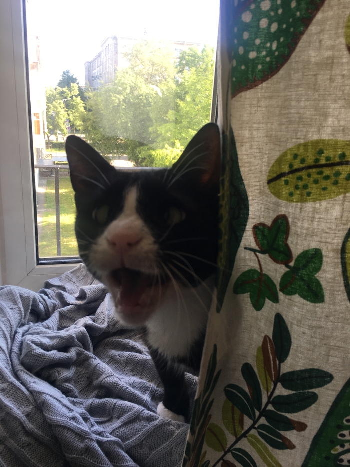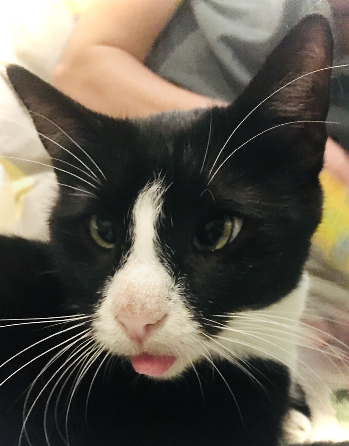 Иногда, засыпая, кот забывает свой язык "снаружи". Зубы не помогают его удерживать, и кот начинает обильно распускать слюни 😄