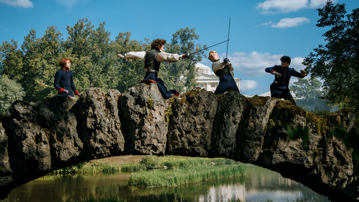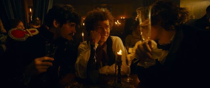 Как и подобает биографическому фильму, начался он с детства Пушкина времён обучения в лицее. Однако сценарист, видимо, посчитал, что история поэта будет скучной для обывателя, и решил превратить это в рэп-мюзикл. Я, конечно, не противник мюзиклов, но когда «наше всё» начинает читать свои стихи под бит, то просто рушится то маломальское погружение, что пытались создавать на протяжении всего хронометража.