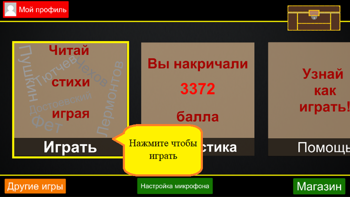 Привет друзья! Скоро закончатся новогодние каникулы, а домашку так и не выучил? Нам задали кучу стихотворений выучить, биографии и другой прочей ерунды... Хочу поделиться с вами как я за эти каникулы выучил все стихи, заодно и поиграл в игру. Я скачал одно приложение с плэй маркета, не скажу какое, дабы не рекламировать, просто намекну: оно похоже на телепередачу по ТНТ "Вы орете великолепно" вот так я его и нашел в маркете и выучил все стихи за выходные. Плюс и поиграли всей семьей.
