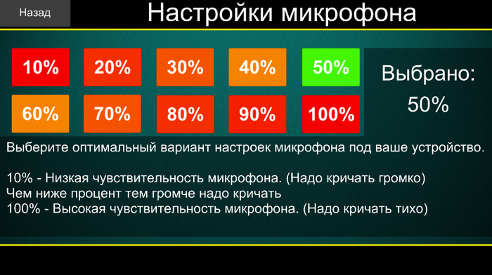 Настройте микрофон в разделе "Настройка микрофона" под свое устройство и свой голос.