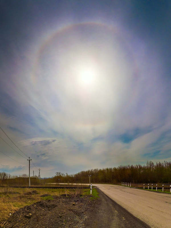 17 RedFoxPro 8 лет назад Гало Когда вижу такое на небе, стараюсь снять. Одним кадром не получается, слишком широко, всегда приходится панорамить. Клею в PTGui. Камера — Canon SX150 IS, RAW. Город Прокопьевск и окрестности. Показать полностью 4 [моё] Дополнение к посту Гало Радуга Сибирь Фотография Панорама Небо Прокопьевск Длиннопост