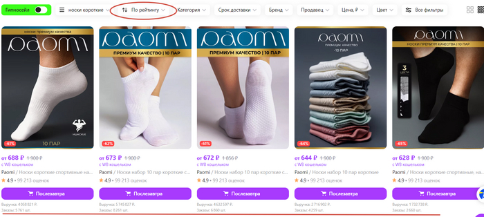 Первые 2 фотки - сортировка по цене, затем по рейтинг и последний по полярности, карточка без рекламы.