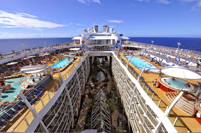и беговые дорожки (на разных кораблях по-разному. где пятая прогулочная палуба круговая, где-то верхняя, но 100% есть)