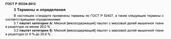 Насколько я понимаю, имеется в виду паштет в колбасных упаковках на картинке выше. Но на всякий случай, обращаю вас к ГОСТу для понимания ситуации, что кат Б на вареные колбасы и кат. Б на паштеты - две большие разницы, как говорят в Одессе. Итак, по ГОСТ Р 55334-2012. Паштеты мясные и мясосодержащие